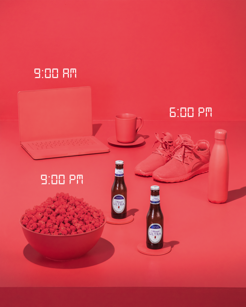 To launch Michelob ULTRA's new smaller 7oz bottle, made for the weekday, we created a series of monochromatic worlds that broke through the visual clutter of the social space.